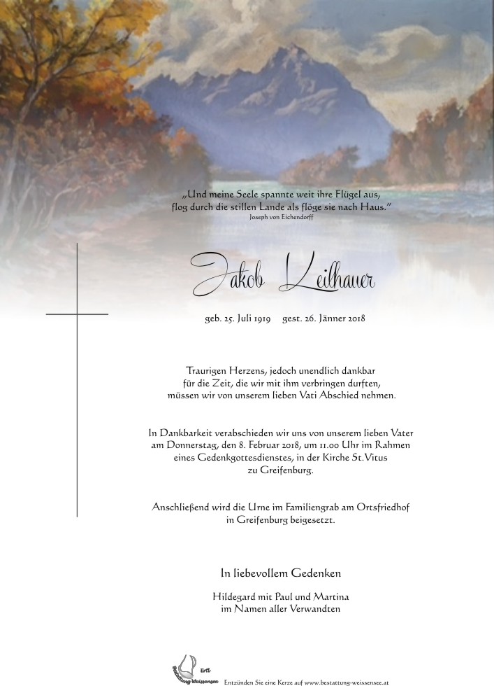Friedhof Greifenburg, † 26.01.2018 (98 Jahre)