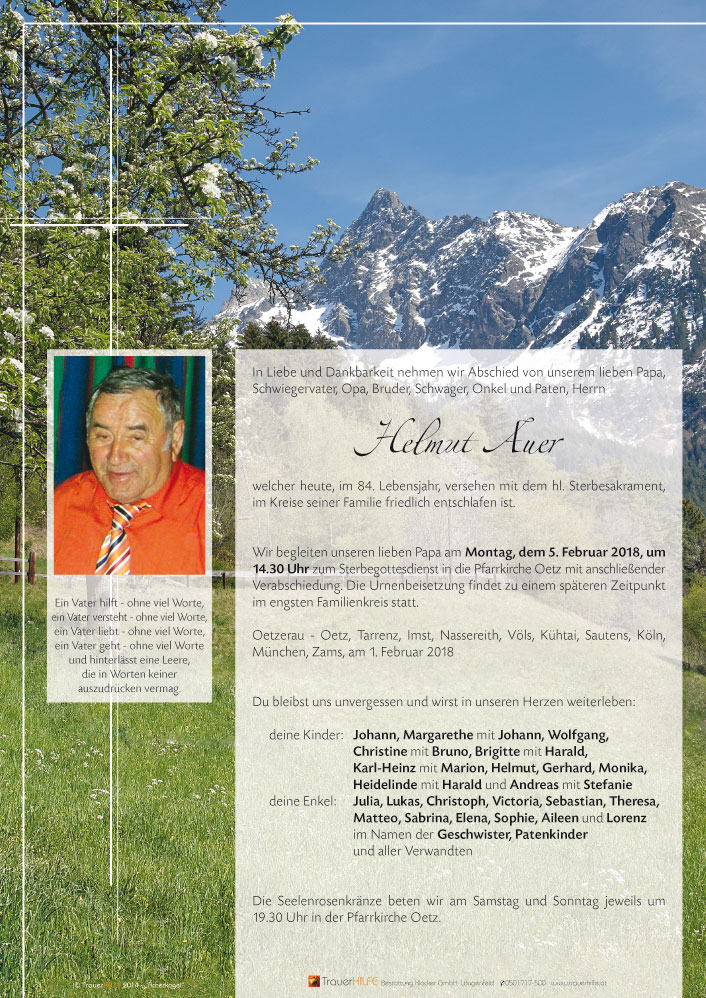 Aufrichtiges Beileid und allen, die Helmut in Trauer zurückgelassen hat, viel Kraft.02.02.2018 22:42 - Renate u. Gebhard