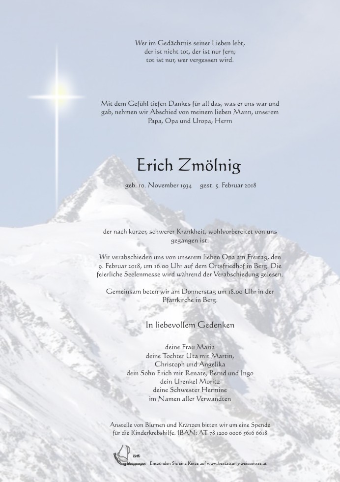 Ich bin tief betroffen und sehr traurig, dass Onkel Erich nun auch von uns gegangen ist.