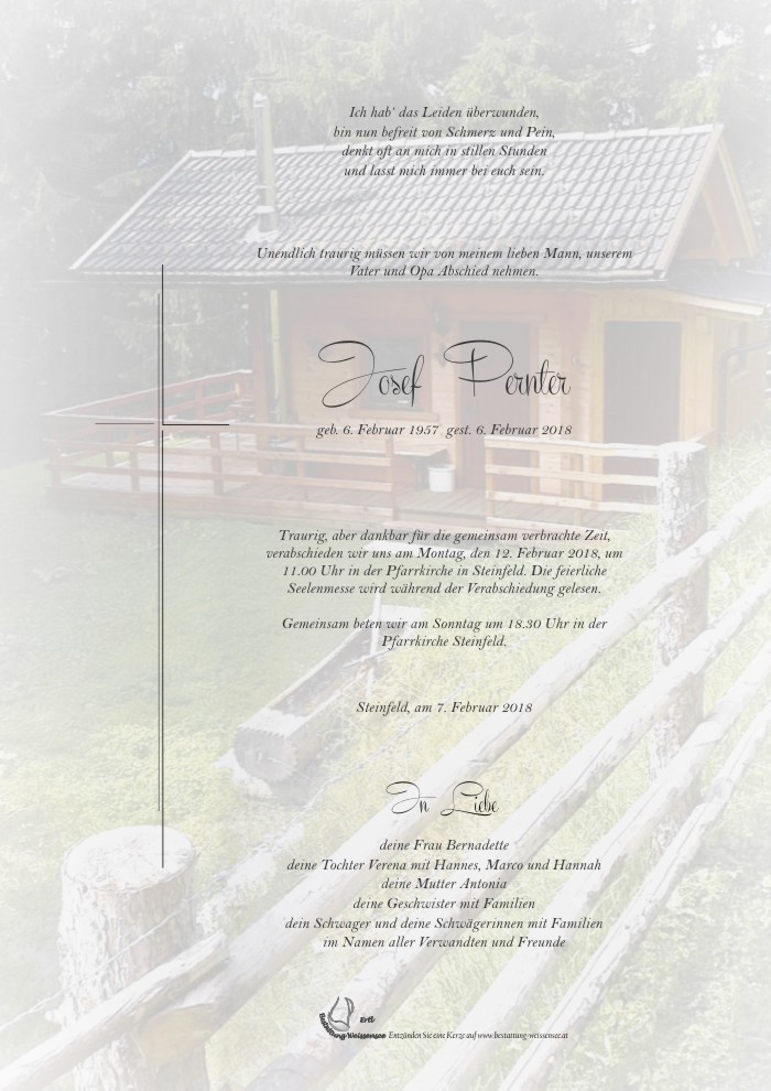Bei vielen, vielen Vereinen und Festen warst Du immer sehr behilflich und stelltest deine ganzen Kochkünste zur Verfügung. Als ich (Fritz) Dich lieber Joe am Montag, den 22. Jänner im Krankenhaus Spittal besuchte, konnte ich nicht ahnen, dass dies unsere letzte Begegnung war! Joe, Du warst ein großartiger Mensch und wir bitten um viel Kraft für deine Gattin, deine Tochter, deinen Enkelkindern, sowie der ganzen Familie! Pfiat di Joe!07.02.2018 18:45 - Edith u. Fritz Linko