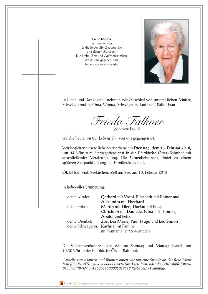 Wir wünschen euch in dieser schweren Zeit viel Kraft und sind im stillen Gedenken an Frieda