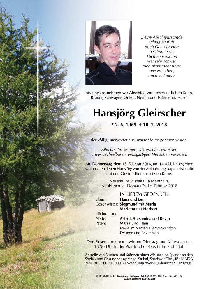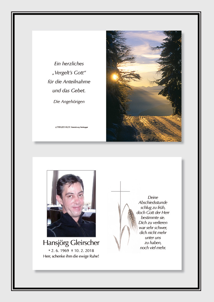 Neue Kerze für Hansjörg Gleirscher entzünden.