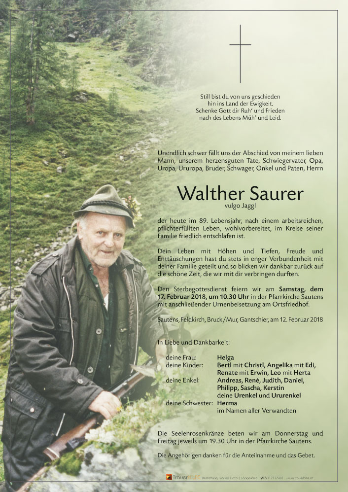 Wir wünschen euch viel Kraft, Zusammenhalt und viele schöne Erinnerungen an euren Walther.
