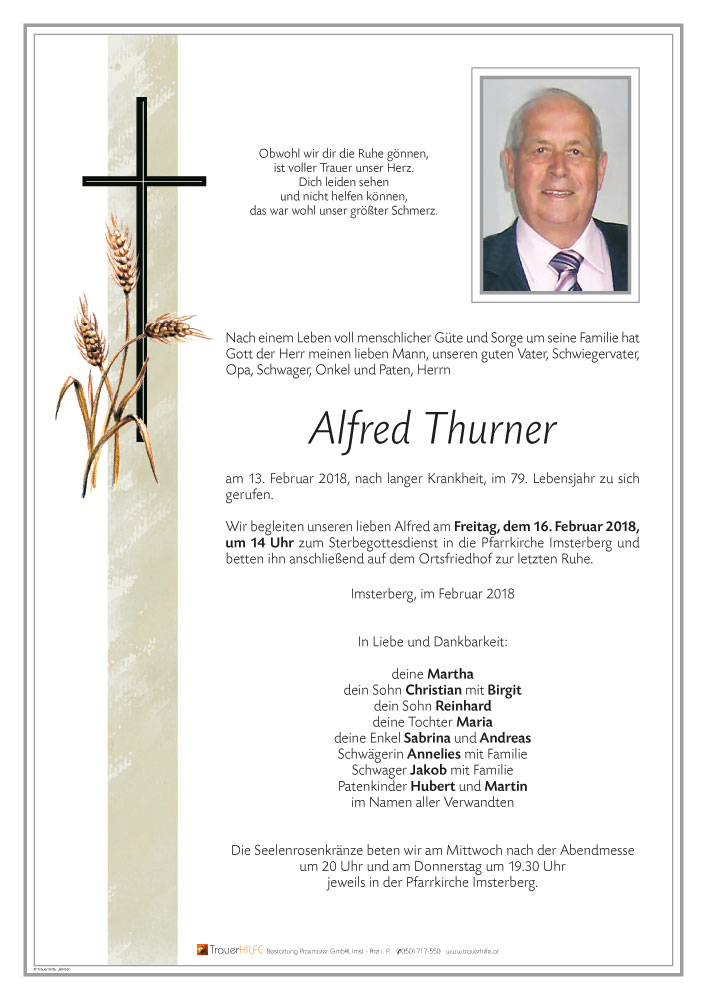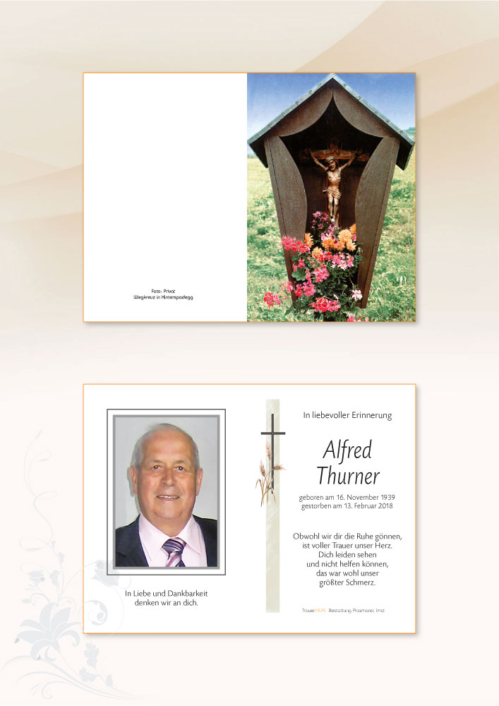 Neue Kerze für Alfred Thurner entzünden.