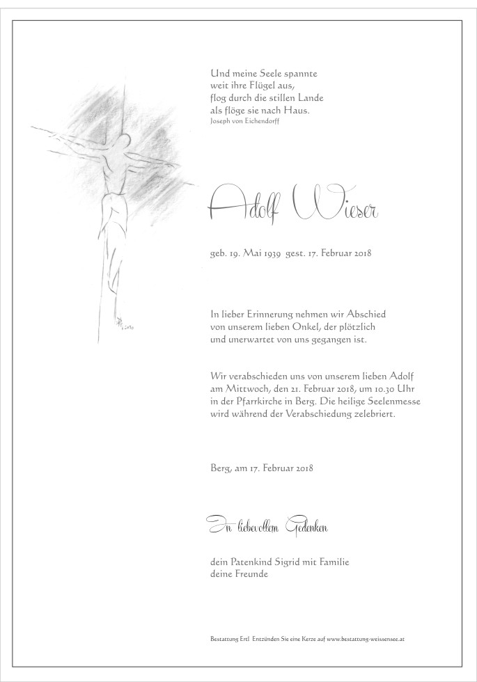 Neue Kerze für Adolf Wieser entzünden.