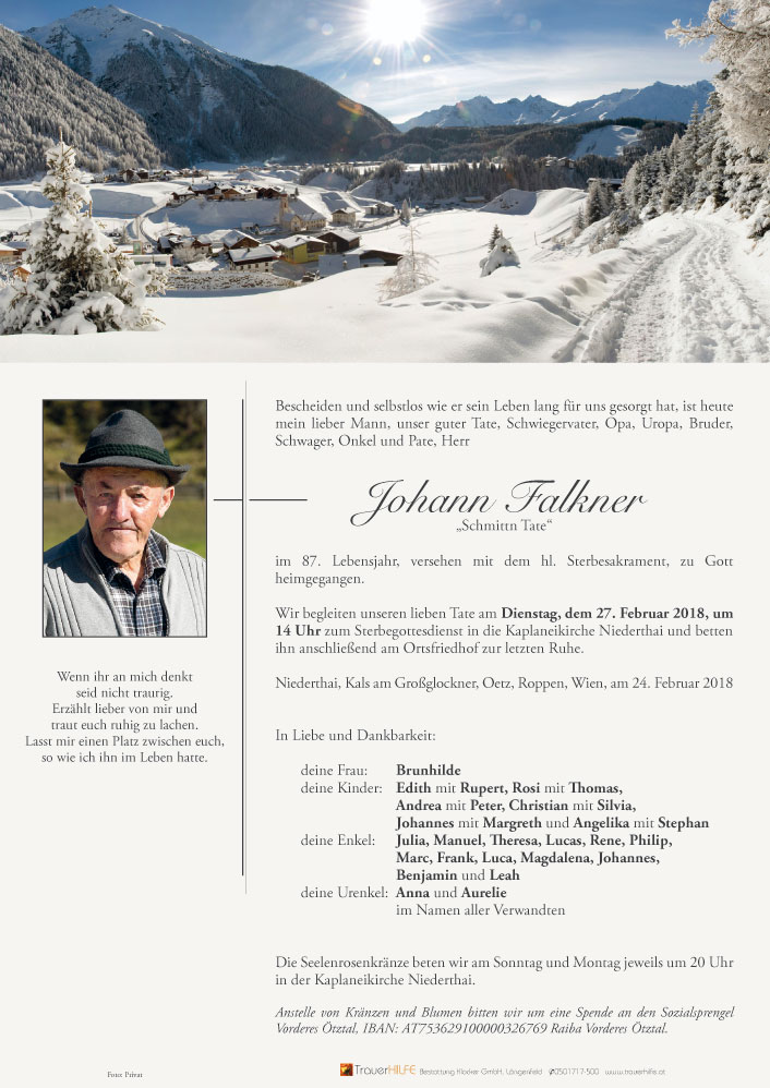 Mein herzliches Beileid zum Ableben von Johann, viel Trost und Kraft In dieser schweren Zeit.25.02.2018 12:32 - Alfred Neurauter