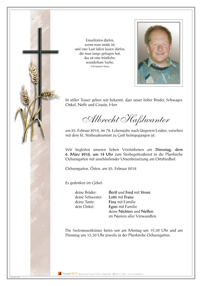 Friedhof Ochsengarten, † 25.02.2018 (77 Jahre)