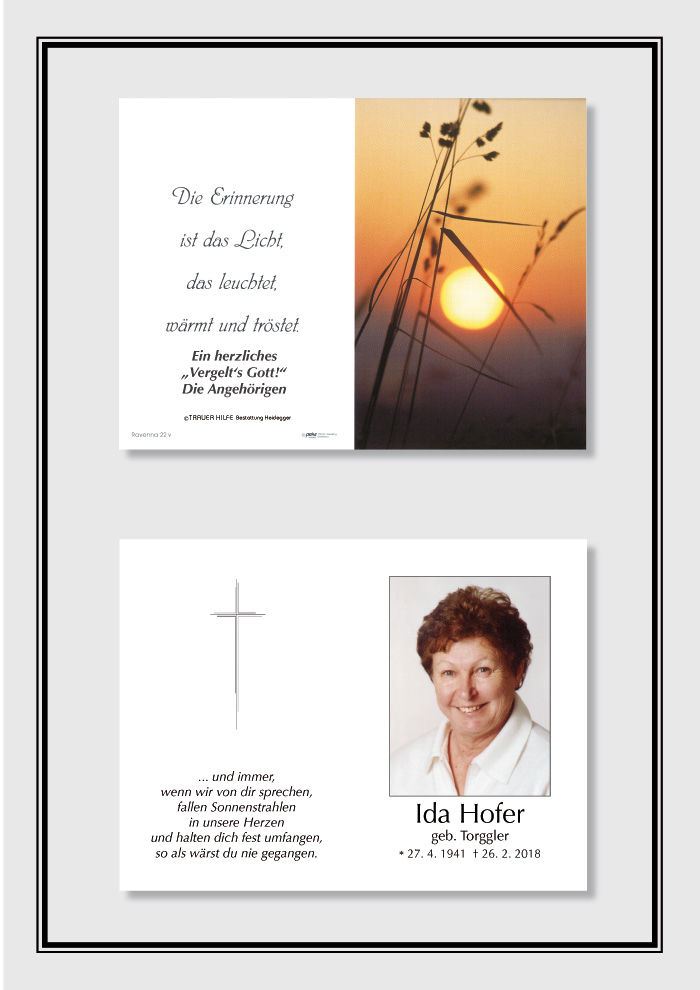 mein aufrichtiges Beileid zum schmerzvollen eurer Ida entbietet aus tiefstem Herzen Lisi.