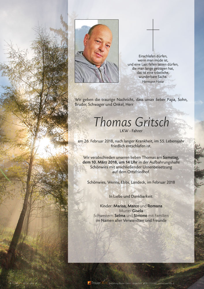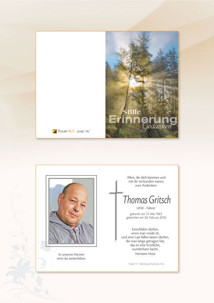 Aufrichtige Anteilnahme mit stillem Gruß03.03.2018 17:36 - Dominik Schrott