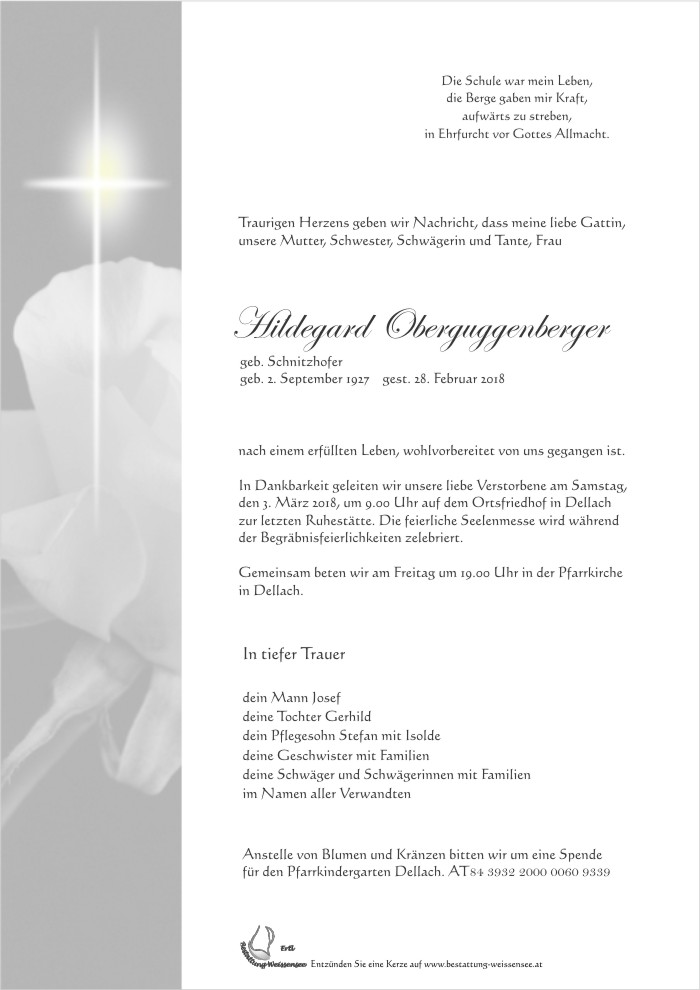 Neue Kerze für Hildegard Oberguggenberger entzünden.