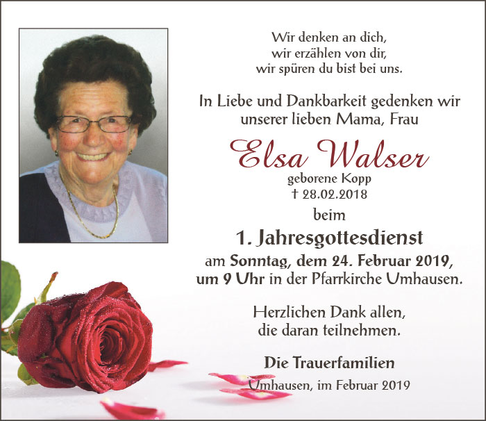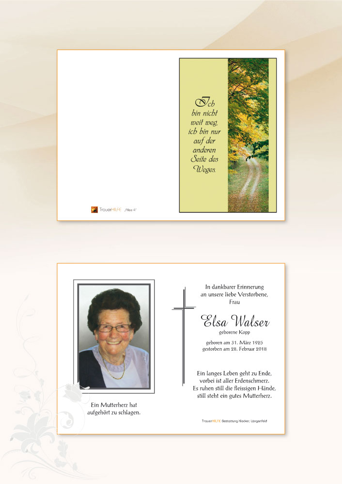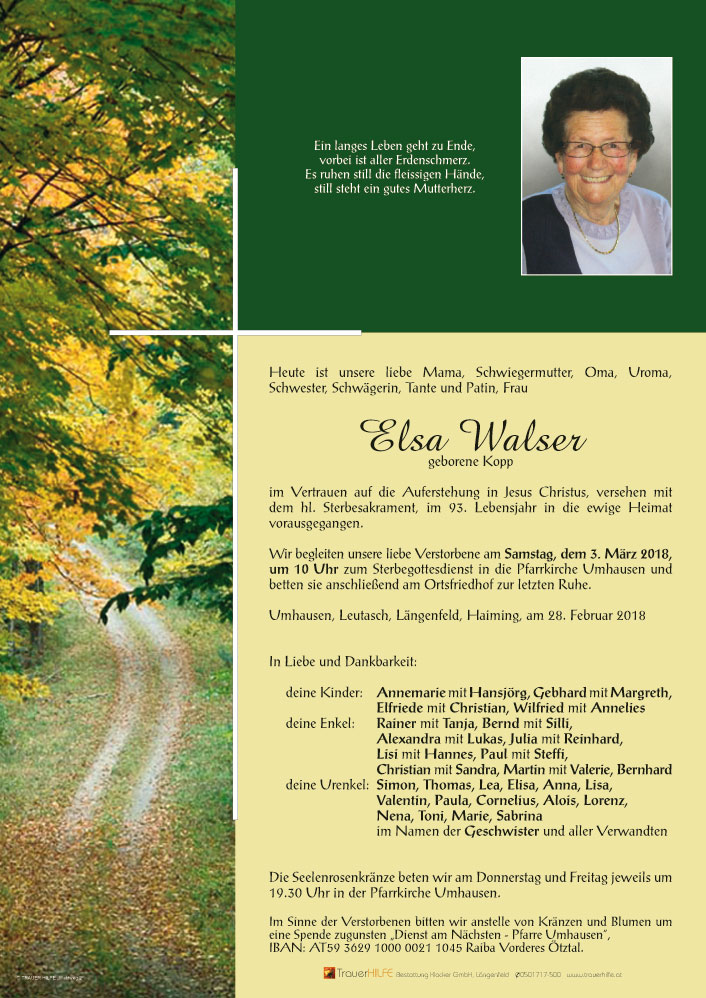 Eurer Mama war ein langes Leben mit euch geschenkt. Auf dem letzten Stück ihres langen Lebensweges durften auch wir sie noch ein Stück begleiten.
