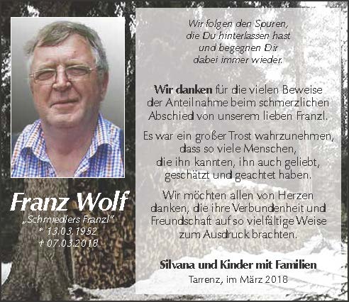 Mein herzlichtes Beileid , ich habe diese schlechte Nachricht eben im Internet gelesen, dass " Schmiedlers Franzl" so unerwartet gestorben ist. Wir sind zusammen in die Volksschule gegangen. Der Tod kommt eben immer zu früh.10.03.2018 08:23 - Ewald Barth