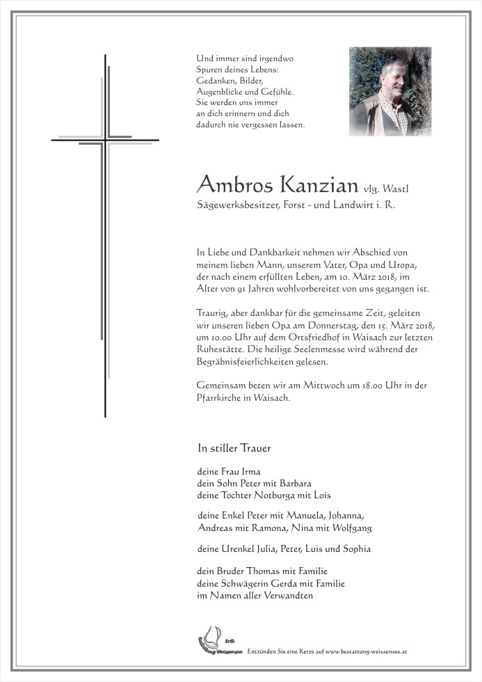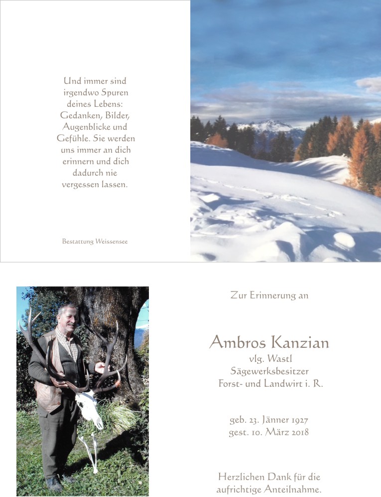 Den Angehörigen aufrichtiges Beileid. R. I. P.