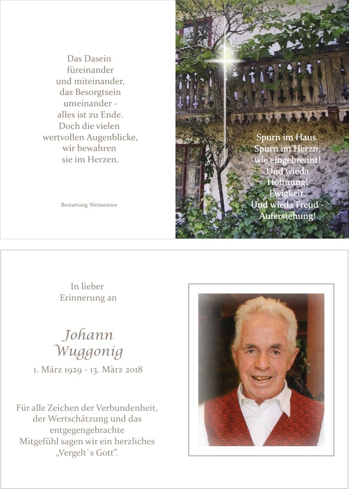 Bestattung wurde durchgeführt von: Markus Ertl Bestattung Weissensee Neusach 26 9762 - Weißensee Tel.: 04713 22 29 zum Bestatter