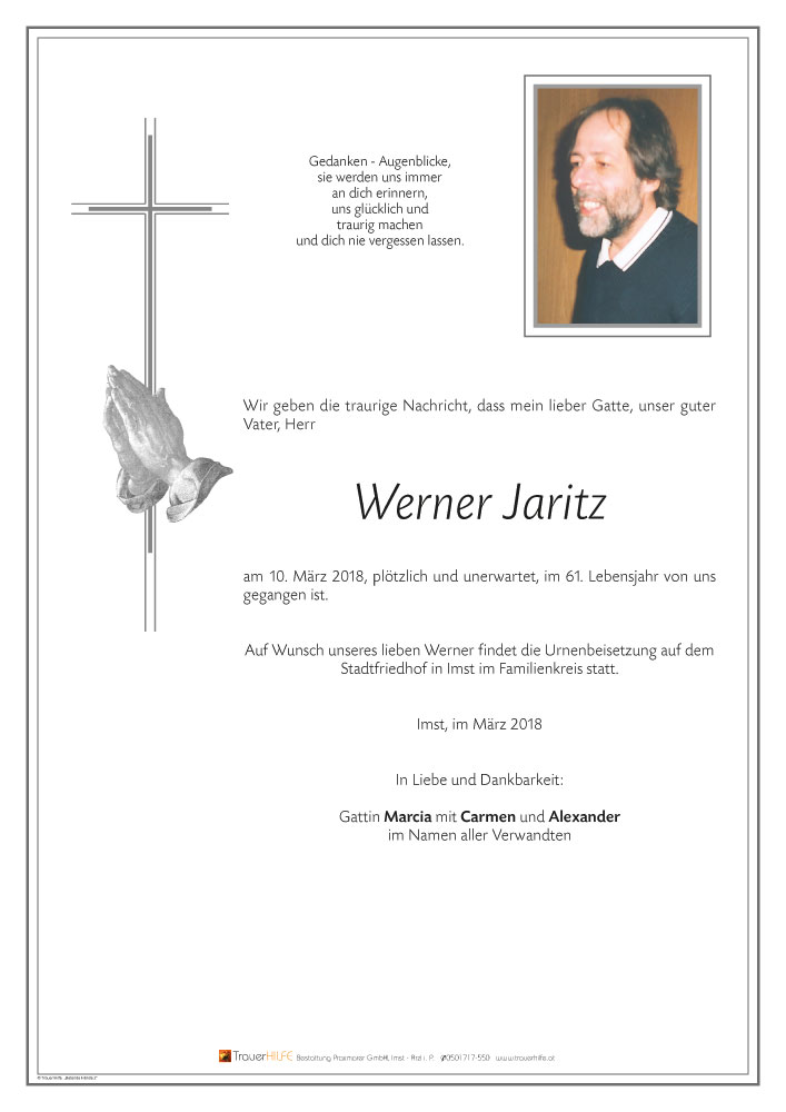 Bestattung wurde durchgeführt von: Daniel Klocker Bestattung Praxmarer GmbH Thomas Walch Str. 4 6460 - Imst Tel.: 05412 64250 zum Bestatter
