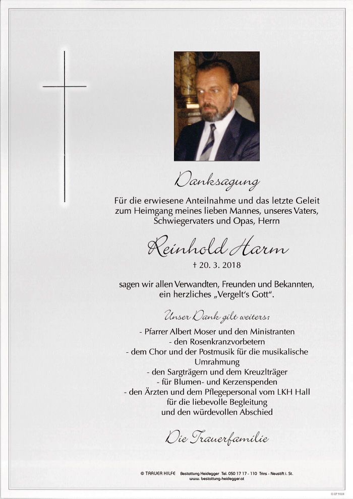Bestattung wurde durchgeführt von: Karl Neurauter Karl Neurauter Bestattung Heidegger Brennerstraße 69 6150 - Steinach am Brenner Tel.: 05275 5211 zum Bestatter
