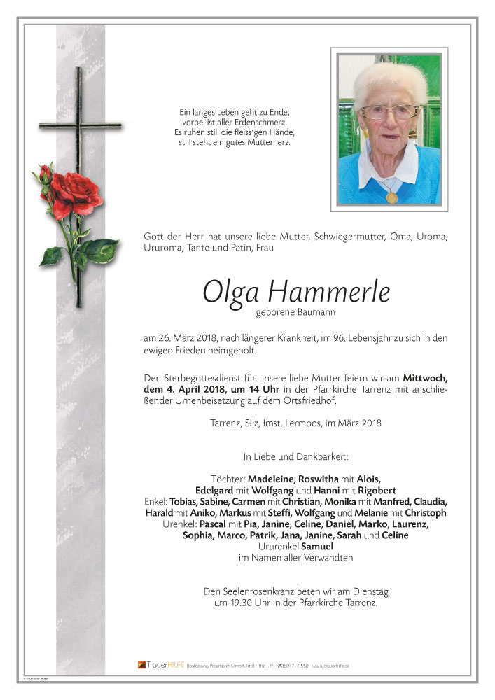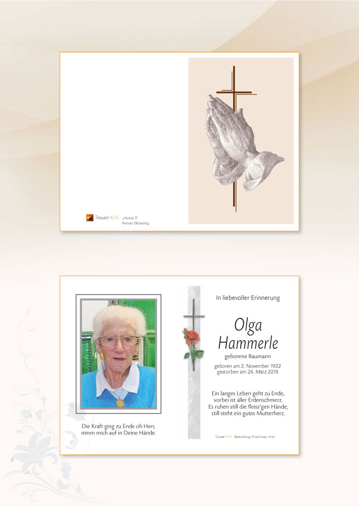 Neue Kerze für Olga Hammerle entzünden.