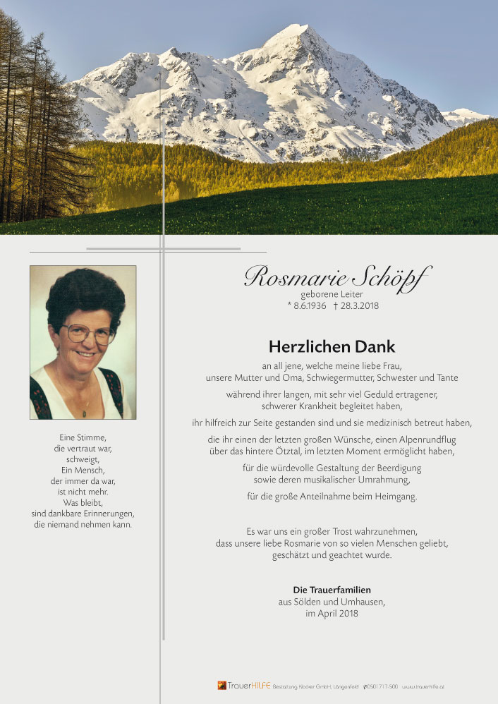 Viel Kraft und Stärke wünscht der Trauerfamilie das Team der Ötztal-Apotheke Sölden.