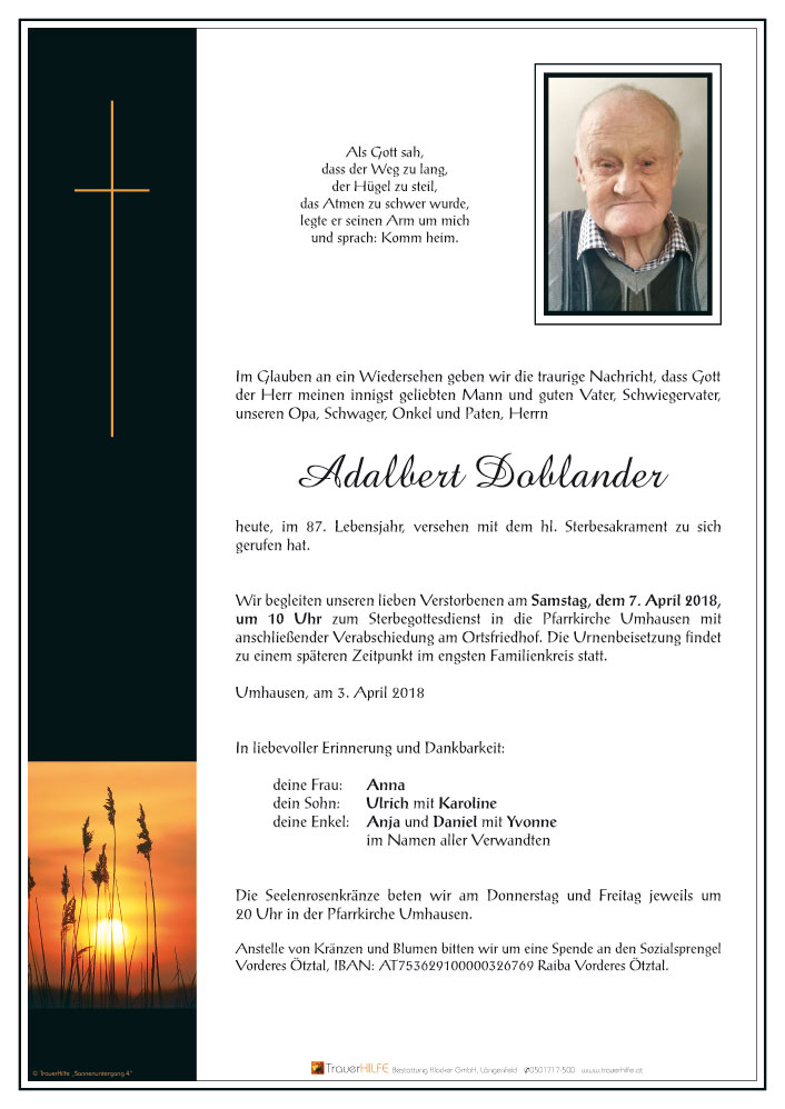 Ein letzter Gruß Adalbert-warst ein feiner Mitmensch,mit dem ich mich gerne unterhalten habe.Ruhe in Frieden.
