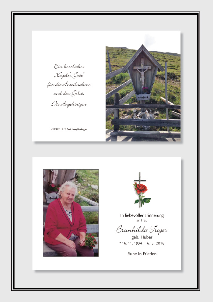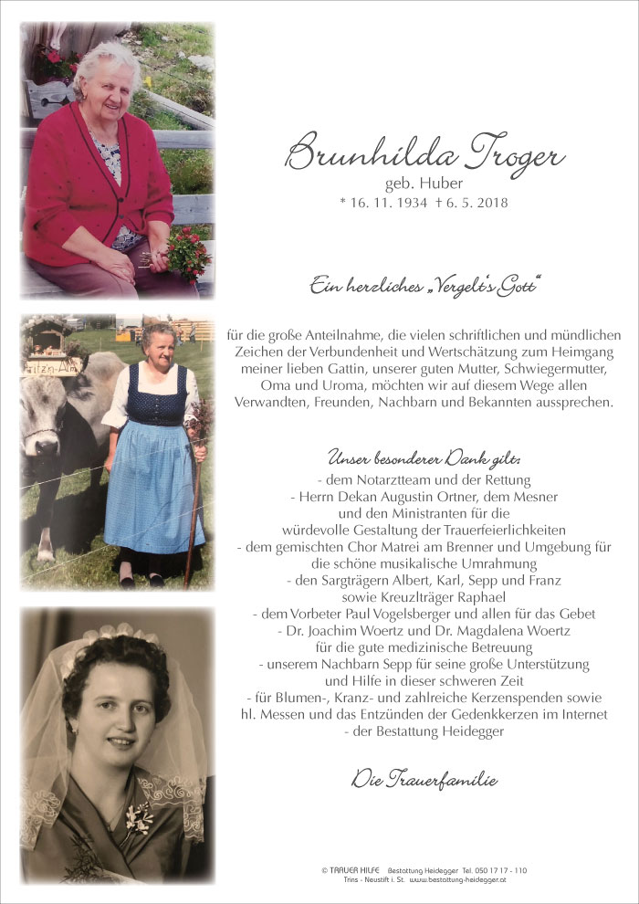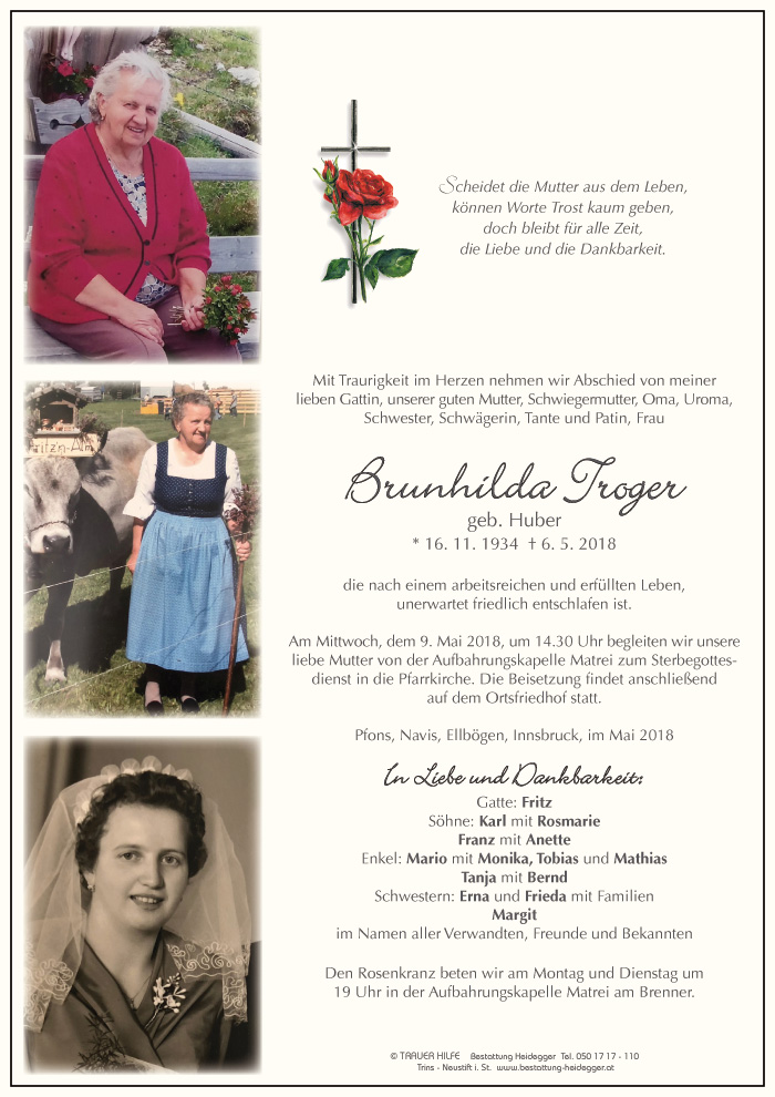 Bestattung wurde durchgeführt von: Karl Neurauter Karl Neurauter Bestattung Heidegger Brennerstraße 69 6150 - Steinach am Brenner Tel.: 05275 5211 zum Bestatter