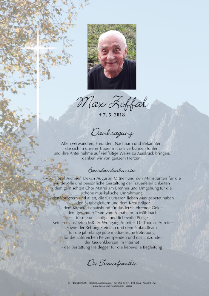 Wir Alle möchten euch zum Ableben vom Max unser tiefes Mitgefühl ausdrücken. Der Max war ein feiner Nachbar. Wir wünschen euch viel Kraft.