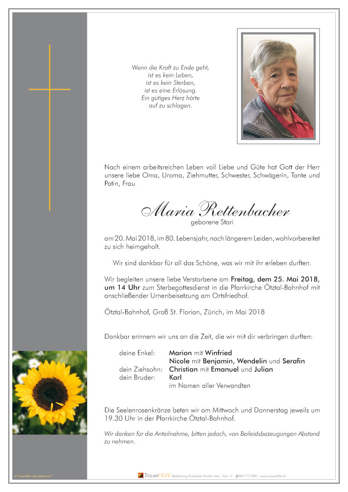 Neue Kerze für Maria Rettenbacher entzünden.
