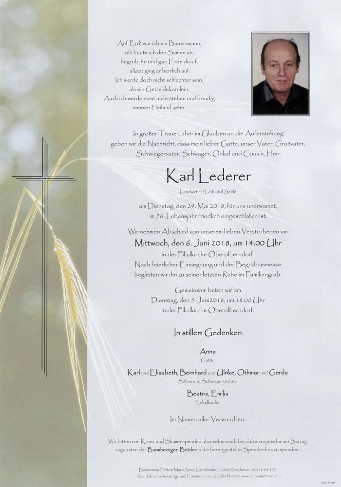 Bestattung wurde durchgeführt von: Frittum Maria Anna TrauerHilfe Bestattung Frittum Bahnstrasse 255 2041 - Wullersdorf Tel.: 050 1717-600 zum Bestatter