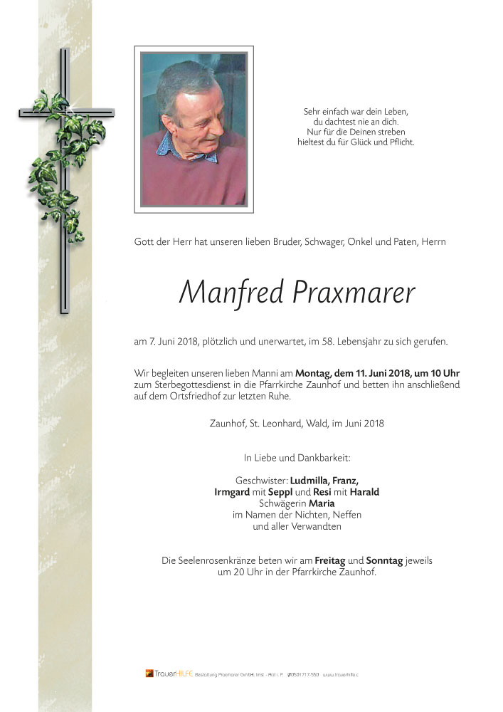 Neue Kerze für Manfred Praxmarer entzünden.