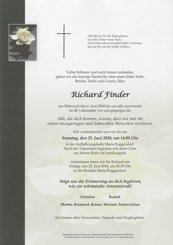 Ich möchte mich bei allen Freunden und Wegbegleitern meines Sohnes Richard für die Anteilnahme bedanken.Es tröstet mich sehr ,dass so viele um ihn trauern und er ihnen fehlen wird. Danke von seiner Mutter.