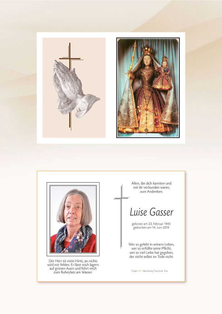 Mögen Engel Luise auf ihrem letzten Weg begleiten, hin zur vollkommenen Liebe Gottes.