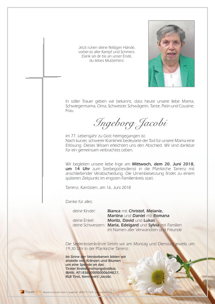 viel Kraft in diesen schweren Stunden wünscht euch Ingrid und Peter19.06.2018 19:18 - Peter und Ingrid Gastl