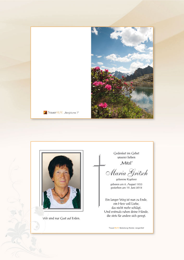 Bestattung wurde durchgeführt von: Daniel Klocker Bestattung Klocker GmbH Oberlängenfeld 41 6444 - Längenfeld Tel.: 05253 5561 zum Bestatter