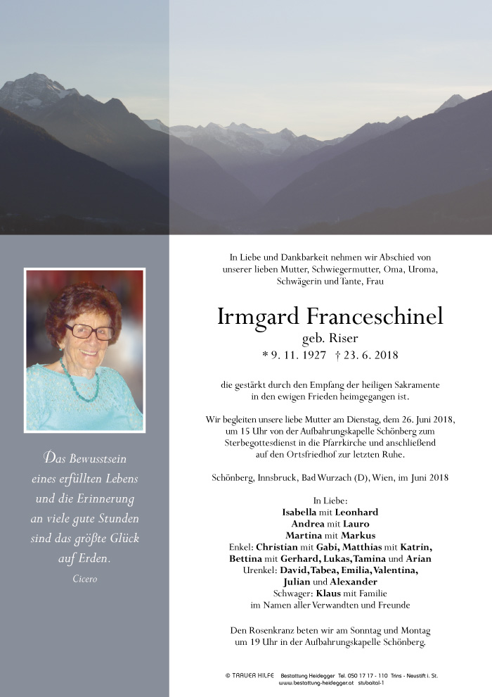 Friedhof Schönberg im Stubaital, † 23.06.2018 (90 Jahre)