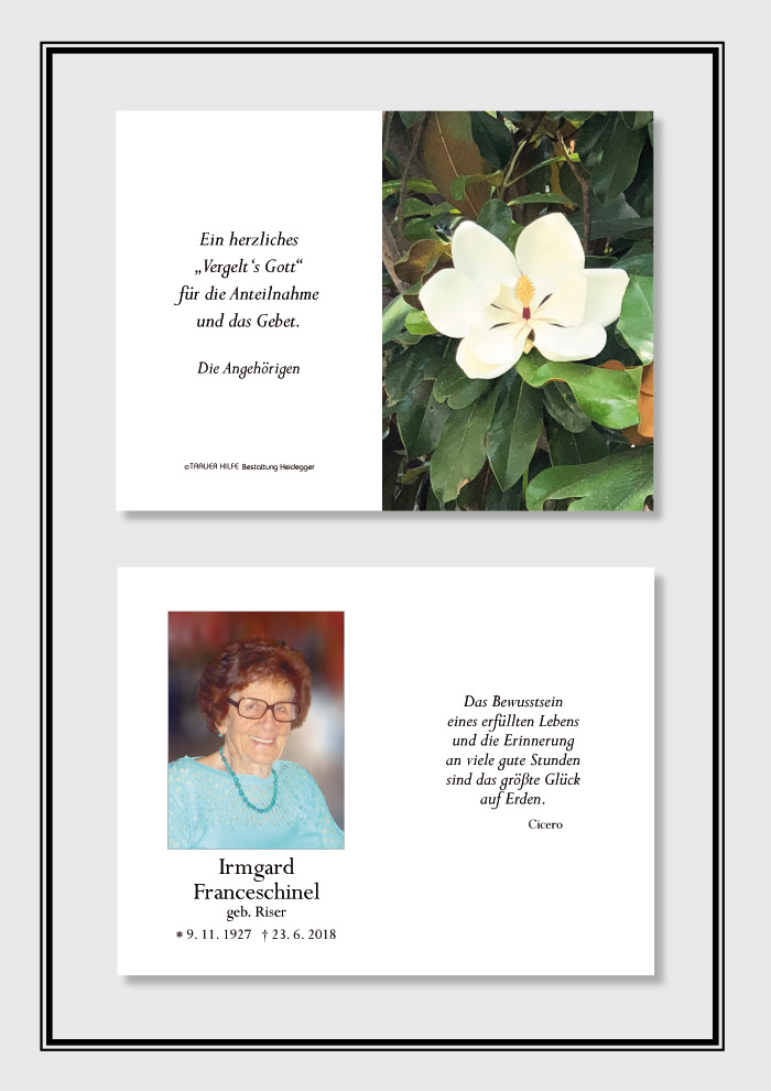Neue Kerze für Irmgard Franceschinel entzünden.