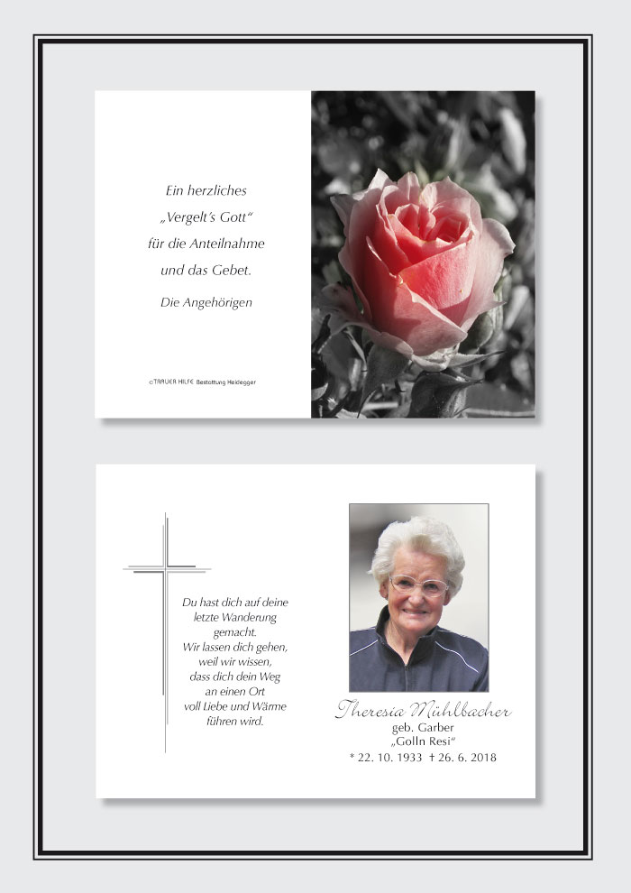 Neue Kerze für Theresia Mühlbacher entzünden.