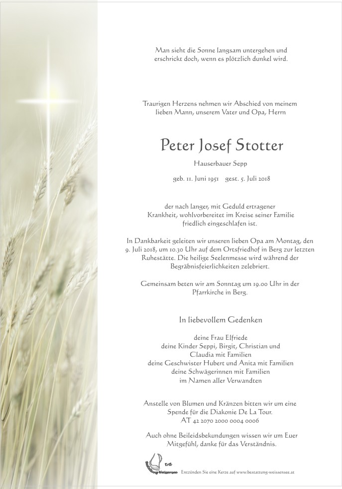 Zum Schutz von Angehörigen gegen unpassende Kommentare. Wir sind eine seriöse Trauerplattform