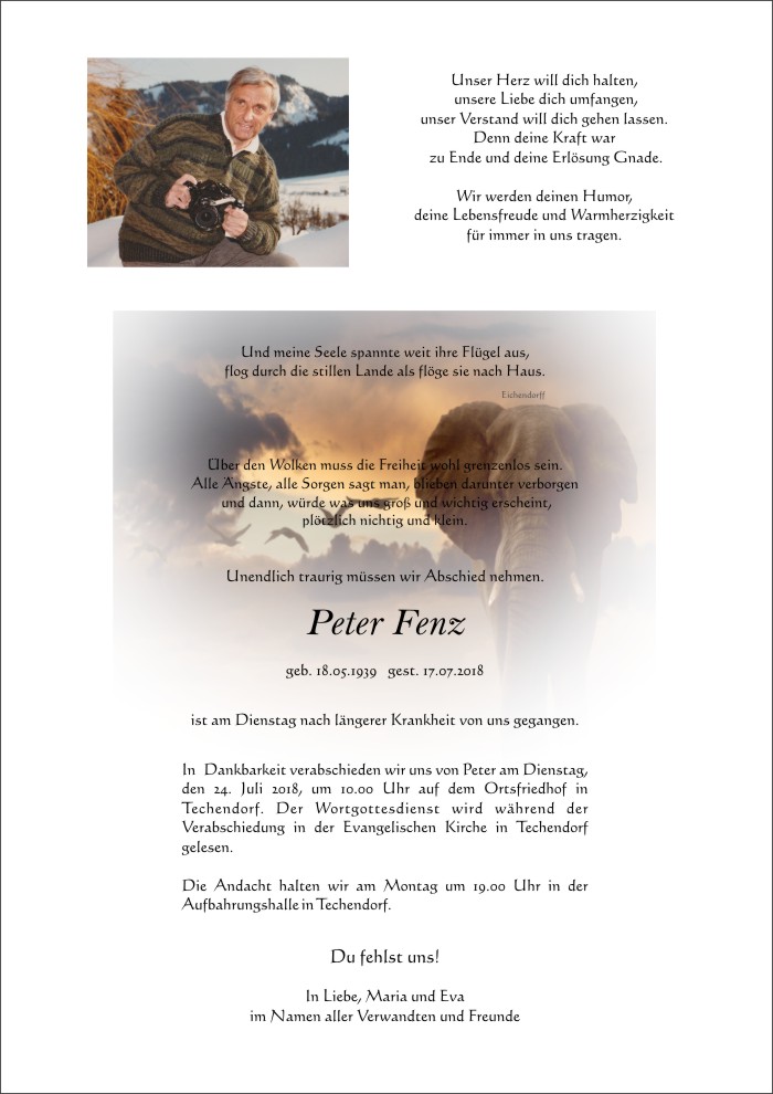 Schön, dass es Dich gab!! Pfiati, lieber Peter Fenz.. du wirst in uns weiterleben!