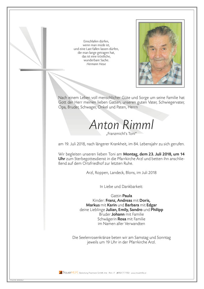 Aufrichtige Anteilnahme mit stillem Gruß20.07.2018 09:46 - Dominik Schrott