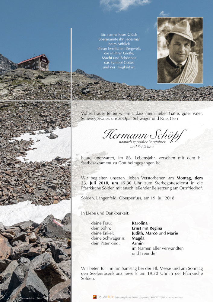 Liebe Trauerfamilie, Hermann ist zur schönsten Wallfahrt aufgebrochen!