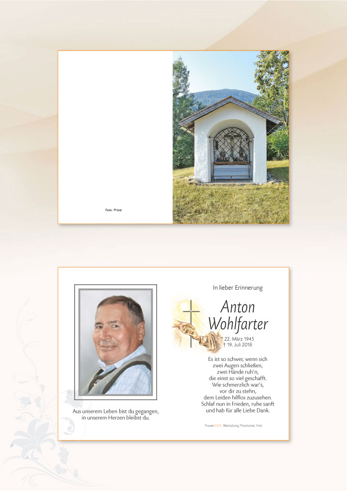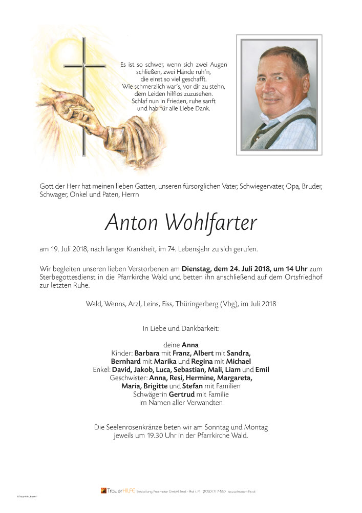Euer Anton wurde von seinem langen Leiden erlöst. Der Herr möge ihm all das, was er für euch während seines irdischen Daseins getan hat, vergelten!