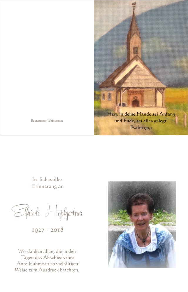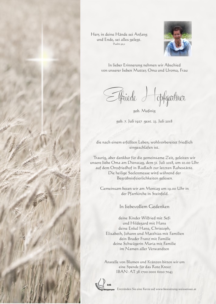 Neue Kerze für Elfriede Hopfgartner entzünden.