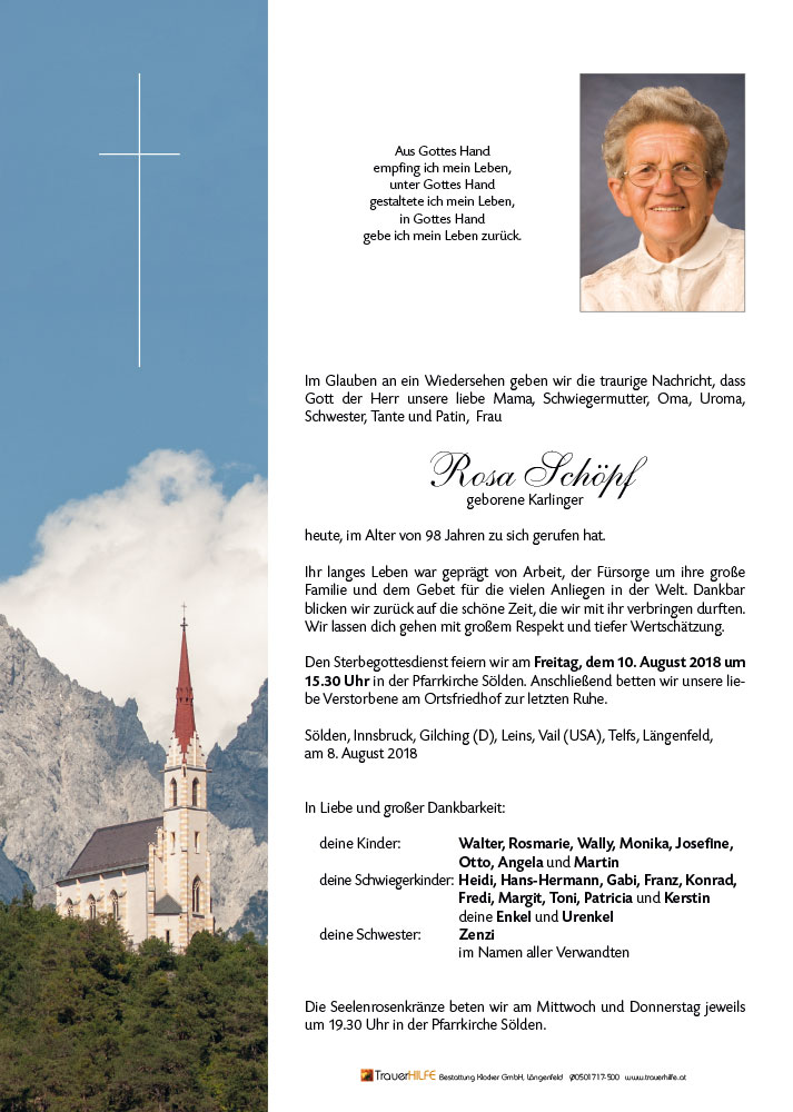 Neue Kerze für Rosa Schöpf entzünden.