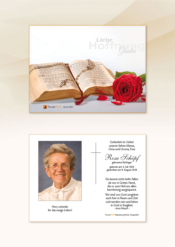 Ein langes Leben hast Du ihr geschenkt, oh Herr. Nun ist sie heimgekehrt in Deinen Frieden.