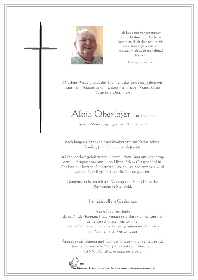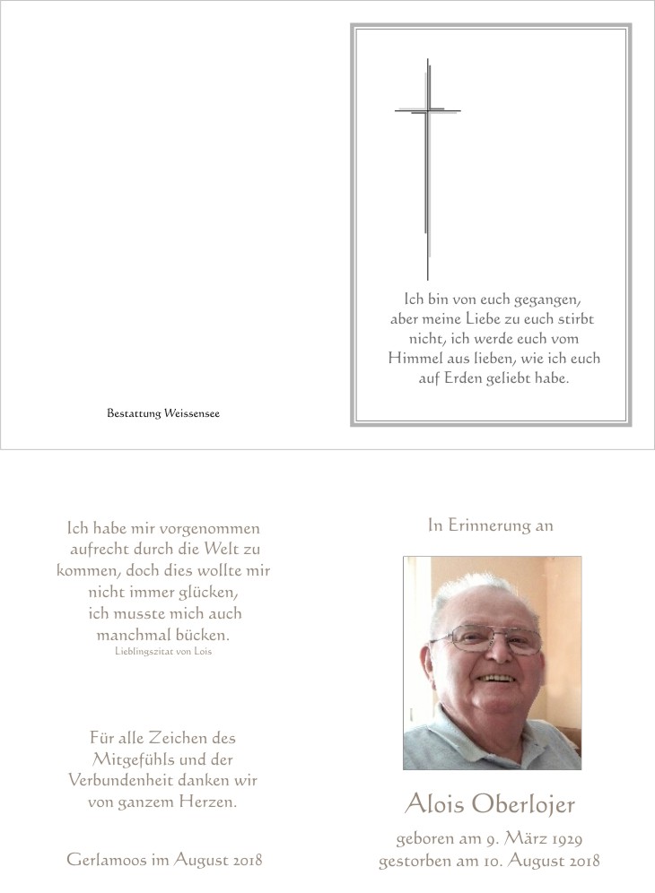 Herzliche Anteilnahme zum Ableben meines Freundes und oftmaligen "Reiseleiters" Alois !