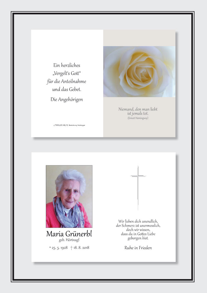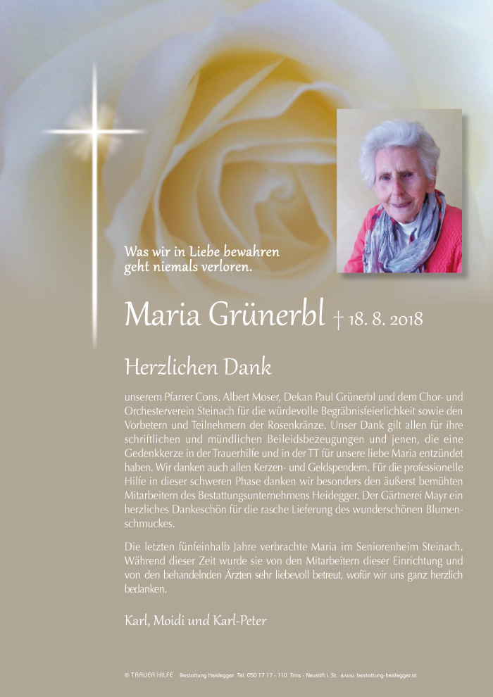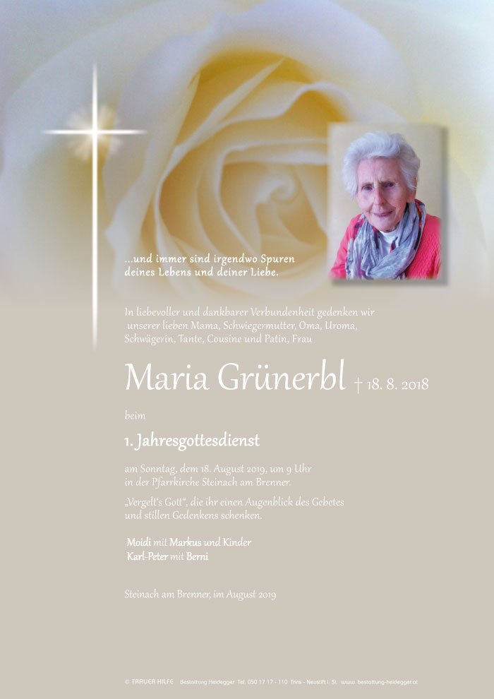 Bestattung wurde durchgeführt von: Karl Neurauter Karl Neurauter Bestattung Heidegger Brennerstraße 69 6150 - Steinach am Brenner Tel.: 05275 5211 zum Bestatter