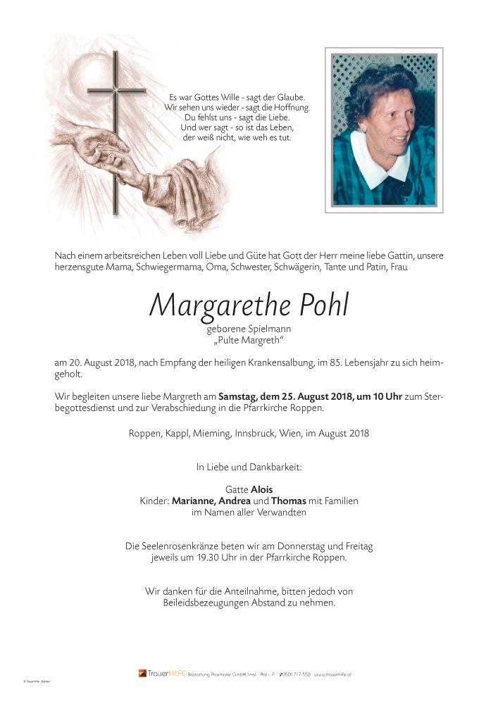 Friedhof Roppen, † 20.08.2018 (84 Jahre)