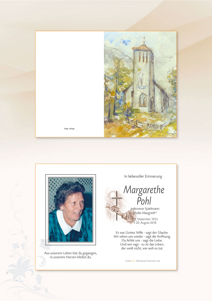 Bestattung wurde durchgeführt von: Daniel Klocker Bestattung Praxmarer GmbH Thomas Walch Str. 4 6460 - Imst Tel.: 05412 64250 zum Bestatter