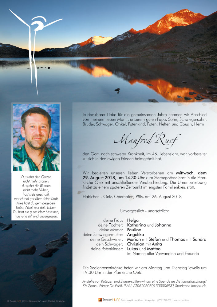 mein Name ist Patrick und ich bin Zivildiener auf der Internen Ambulanz in Zams. Ich habe Manfred während seiner Aufenthalte im KH Zams öfters getroffen und lernte ihn mit der Zeit sehr zu schätzten.