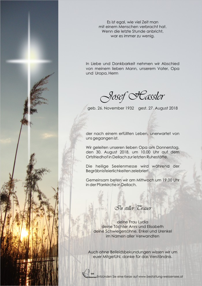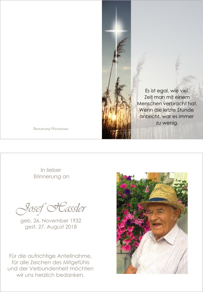 Bestattung wurde durchgeführt von: Markus Ertl Bestattung Weissensee Neusach 26 9762 - Weißensee Tel.: 04713 22 29 zum Bestatter