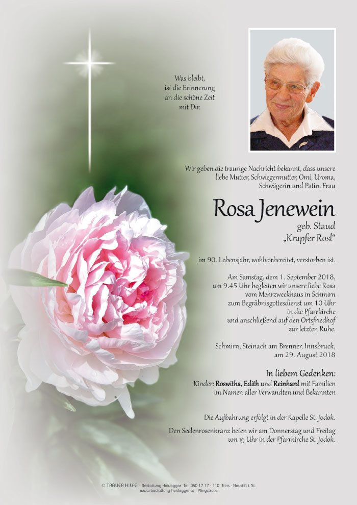 Bestattung wurde durchgeführt von: Karl Neurauter Karl Neurauter Bestattung Heidegger Brennerstraße 69 6150 - Steinach am Brenner Tel.: 05275 5211 zum Bestatter